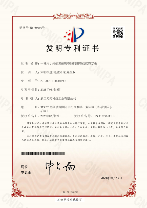 發明-一種用于高強聚酯帆布協同阻燃浸膠的方法