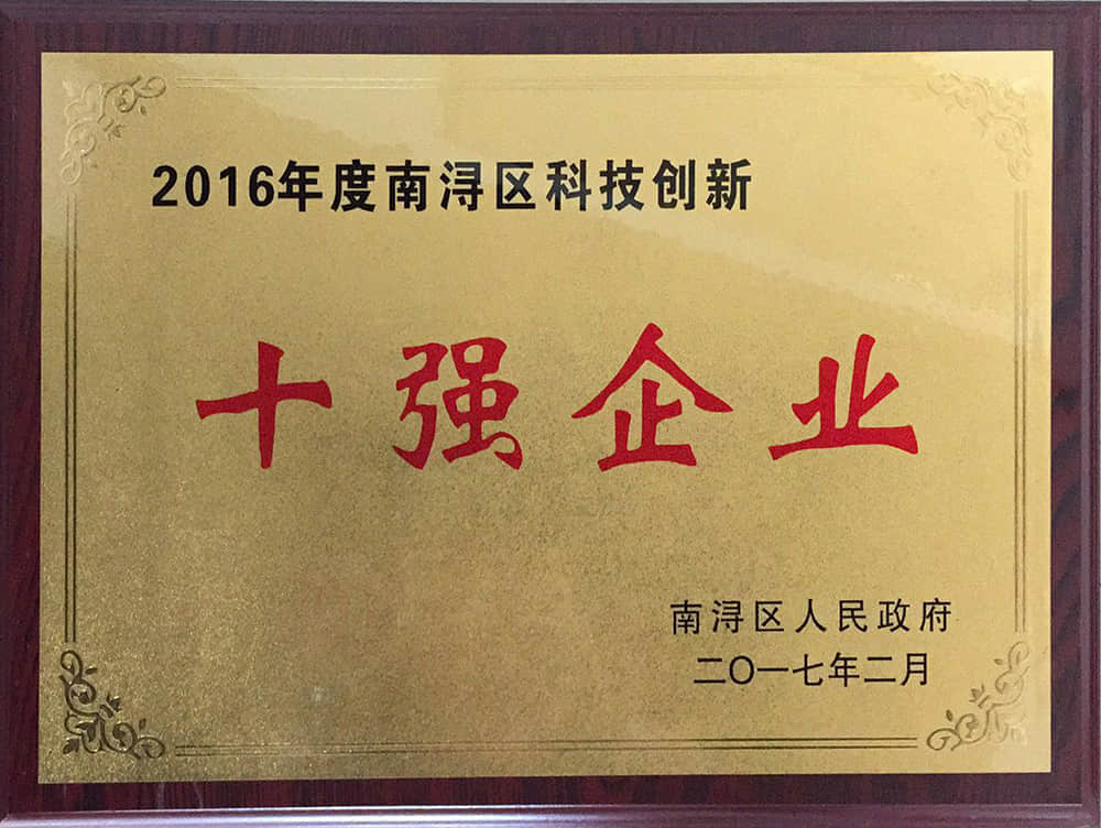 2016年度南潯區(qū)科技創(chuàng)新十強(qiáng)企業(yè)